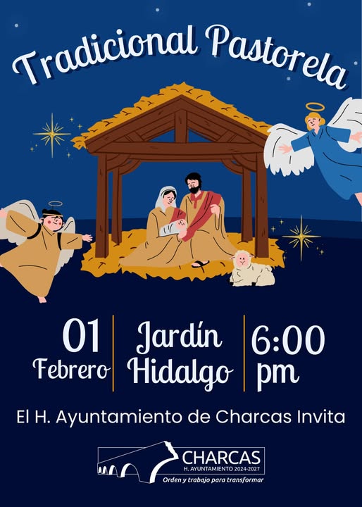 El Ayuntamiento de Charcas invita a todas las familias a disfrutar de la tradicional Pastorela, una expresión cultural que fortalece nuestra identidad.