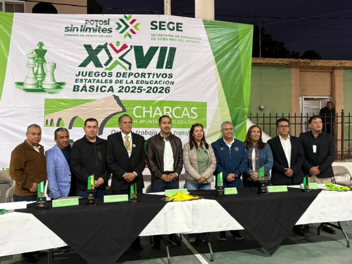 Con la participación de delegaciones de todo el estado, fueron inaugurados en la cabecera municipal de Charcas los XXVII Juegos Deportivos Estatales de Educación Básica 2025–2026 en la disciplina de ajedrez, en las categorías de primaria y secundaria, evento clasificatorio a la etapa nacional en Jalisco. El acto inaugural estuvo encabezado por el Dr. Eduardo Quiroz Sandoval , Jefe del departamento de Educación Física y la presidenta municipal de Charcas, Marisol Nájera Alba, quienes dieron la declaratoria oficial y realizaron la primera jugada simbólica. Pese a la lluvia, los contingentes de las regiones Altiplano, Media, Centro y Huasteca desfilaron por las principales calles hasta la cancha municipal, donde se llevó a cabo la ceremonia con honores a la bandera, participando la escolta de la primaria Fernández de Lizardi, Banda de Guerra de la escuela secundaria Miguel Hidalgo y la Banda Sinfónica Juvenil de Charcas. Durante su mensaje, la alcaldesa dio la bienvenida a los participantes, destacando el orgullo de ser sede de este importante evento, mientras que el coordinador de los Juegos, Pedro Ulloa, resaltó el papel del deporte en la formación de los jóvenes. En agradecimiento y por el apoyo brindado para la realización de los Juegos, el Dr. Eduardo Quiroz Sandoval, hizo entrega de un reconocimiento a Marisol Nájera Alba. Asimismo en la parte artística se tuvo la participación del grupo de bastoneras de la escuela Preparatoria Ramón Mayagoitia, quienes presentaron el número artístico titulado Classic Latino Medley. Las competencias iniciarán este lunes a las 8:00 de la mañana en el Club de Leones, dónde participan alumnos de doces sectores educativos de primaria y secundaria.