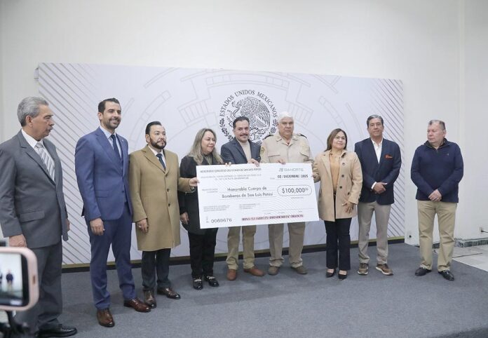 La LXIV Legislatura del Congreso del Estado hizo entrega de un apoyo económico al H. Cuerpo de Bomberos de San Luis Potosí, por la cantidad de cien mil pesos.