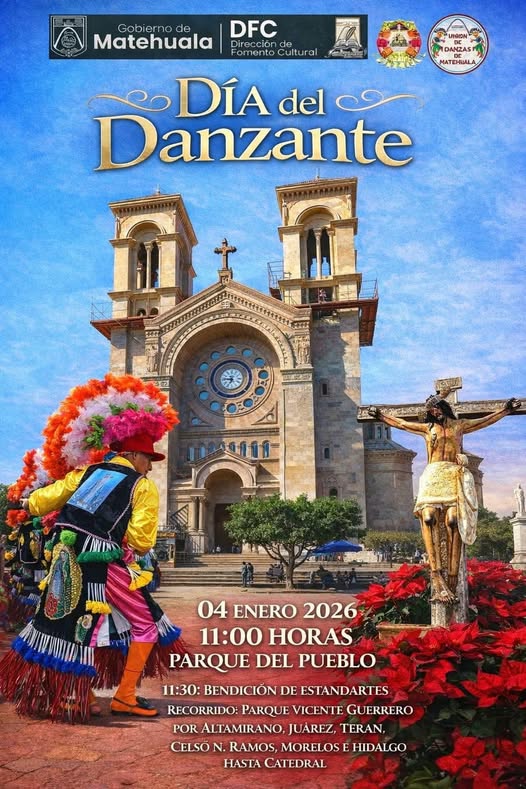 El Gobierno Municipal de Matehuala, a través de la Dirección de Fomento Cultural, invita a la ciudadanía a formar parte de la conmemoración del Día del Danzante, este domingo 4 de enero.