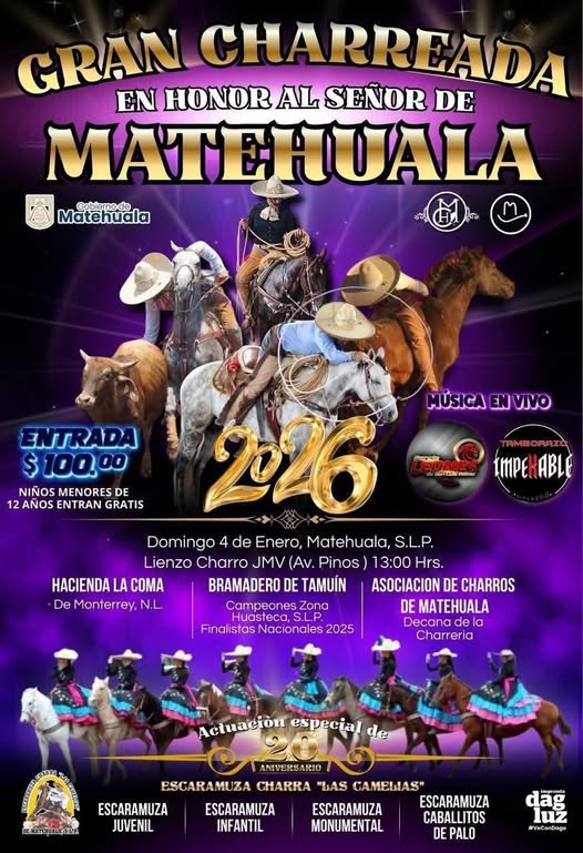 Matehuala vivirá una gran fiesta de tradición y orgullo charro con la Gran Charreada 2026, un evento lleno de emoción, destreza y música en vivo, en honor al Señor de Matehuala.