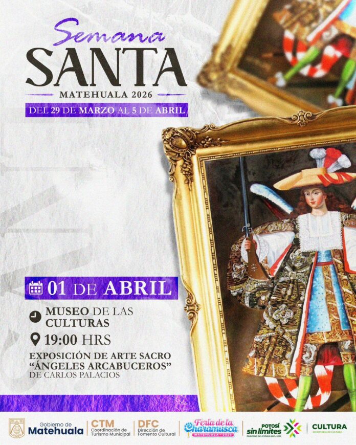 InicioEntretenimientoSEMANA SANTA MATEHUALA 2026 EntretenimientoEventosGobierno de Matehuala SEMANA SANTA MATEHUALA 2026 By La Razón del Altiplano 31 de marzo de 2026 0 15 Cuota FacebookTwitterPinterestWhatsApp 🎨 Exposición de Arte Sacro “Ángeles Arcabuceros”📍 Museo de las Culturas📅 1 de abril | ⏰ 19:00 hrs Cuota FacebookTwitterPinterestWhatsApp Artículo anteriorAVISO IMPORTANTE | CLASE 2007 Y REMISOS La Razón del Altiplanohttps://www.larazondelaltiplano.com.mx RELATED ARTICLES Gobierno de Matehuala AVISO IMPORTANTE | CLASE 2007 Y REMISOS 30 de marzo de 2026 Entretenimiento SEMANA SANTA MATEHUALA 2026 30 de marzo de 2026 Deportes CHIVAS, PUMAS Y TIGRES LLEGAN A MATEHUALA: TODO LISTO PARA LA COPA 2026 29 de marzo de 2026 Most Popular AVISO IMPORTANTE | CLASE 2007 Y REMISOS 30 de marzo de 2026 SEMANA SANTA MATEHUALA 2026 30 de marzo de 2026 SE SOLICITARÁ REVISIÓN OPORTUNA A COMISIONES LEGISLATIVAS PARA INICIATIVA DE PARLAMENTO DE LAS PERSONAS ADULTAS MAYORES. 29 de marzo de 2026 COMISIÓN DE DESARROLLO ECONÓMICO Y SOCIAL APRUEBA REFORMA PARA INCORPORAR EL CONCEPTO DE “ECONOMÍA SOCIAL” EN LA LEGISLACIÓN LOCAL 29 de marzo de 2026 Cargar más Recent Comments