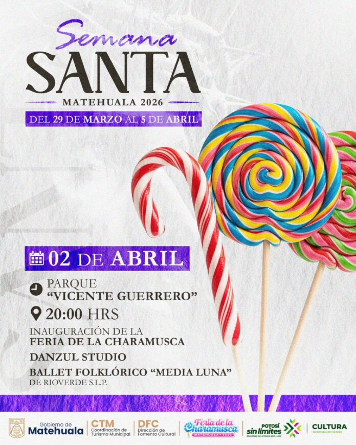 InicioEntretenimientoSEMANA SANTA MATEHUALA 2026 EntretenimientoEventos SEMANA SANTA MATEHUALA 2026 By La Raz贸n del Altiplano 1 de abril de 2026 0 11 Cuota FacebookTwitterPinterestWhatsApp 馃嵀 Feria de la Charamusca 2026馃搷 Parque del Pueblo馃搮 Del 2 al 5 de abril Cuota FacebookTwitterPinterestWhatsApp Art铆culo anteriorSEMANA SANTA MATEHUALA 2026Art铆culo siguienteSEMANA SANTA MATEHUALA 2026 La Raz贸n del Altiplanohttps://www.larazondelaltiplano.com.mx RELATED ARTICLES Entretenimiento SEMANA SANTA MATEHUALA 2026 1 de abril de 2026 Entretenimiento SEMANA SANTA MATEHUALA 2026 31 de marzo de 2026 Entretenimiento SEMANA SANTA MATEHUALA 2026 30 de marzo de 2026 Most Popular SEMANA SANTA MATEHUALA 2026 1 de abril de 2026 SEMANA SANTA MATEHUALA 2026 31 de marzo de 2026 AVISO IMPORTANTE | CLASE 2007 Y REMISOS 30 de marzo de 2026 SEMANA SANTA MATEHUALA 2026 30 de marzo de 2026 Cargar m谩s Recent Comments