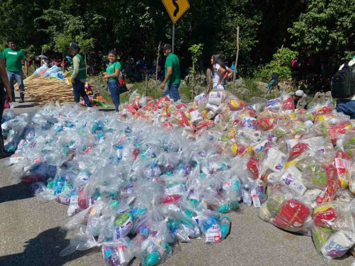 En zonas afectadas en el municipio de Tampacán, como Refugio, Huexquito, Ceiba, Cuauyahual, Chimimexco, Temalacaco y El Hulero, la dependencia distribuyó apoyos directamente a las familias damnificadas.