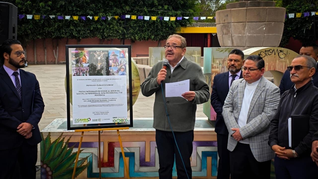 Gracias al impulso del Gobernador Ricardo Gallardo Cardona para preservar las tradiciones que dan identidad a San Luis Potosí, la Secretaría de Cultura (Secult) entregó la declaratoria de validez a las y los guardianes de las fiestas patronales en honor al Señor del Saucito. El titular de la dependencia, Mario García Valdez, destacó que este acto fortalece el acompañamiento institucional a las expresiones culturales que forman parte del patrimonio colectivo, consolidando el cambio que se vive y se siente en la protección de las raíces potosinas.