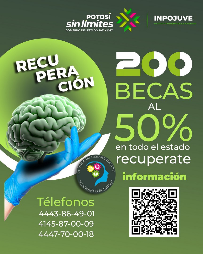 Bajo el impulso del Gobernador Ricardo Gallardo Cardona, el Instituto Potosino de la Juventud (Inpojuve) amplía la atención integral para la juventud potosina con la firma de un convenio con la clínica de rehabilitación “Luchando Sobrios”. Como parte de esta estrategia sin límites, se otorgarán 200 becas con un 50 por ciento de descuento para jóvenes de 12 a 29 años que requieran tratamiento por consumo de sustancias, con disponibilidad en centros ubicados en las cuatro regiones del Estado para garantizar acceso oportuno y cercano.