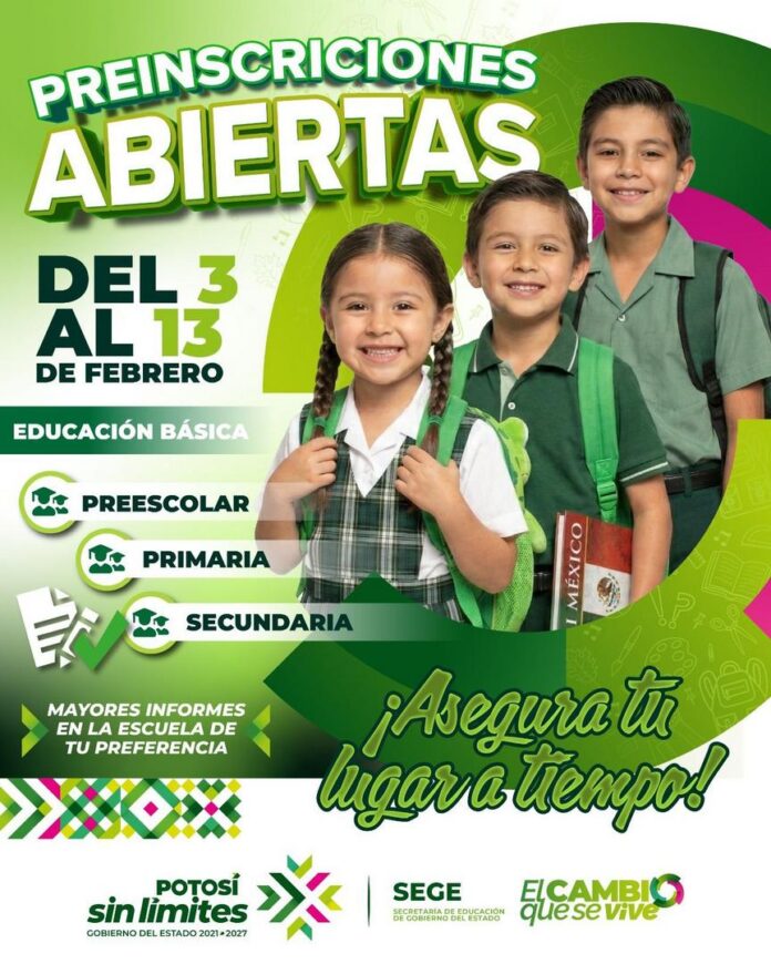 Con el impulso sin límites del Gobernador Ricardo Gallardo Cardona, la Secretaría de Educación de Gobierno del Estado (SEGE) reafirma que ninguna preinscripción podrá condicionarse al pago de cuotas o aportaciones, y que todos los planteles atenderán cada solicitud conforme a los principios de equidad e inclusión. Los documentos requeridos deberán ajustarse a las Normas Específicas de Control Escolar de la Secretaría de Educación Pública.