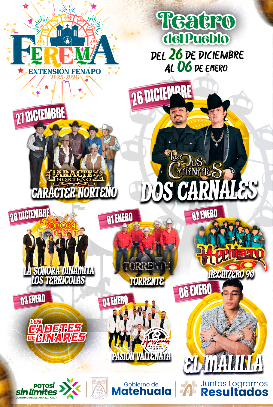 El Gobierno Municipal de Matehuala, en coordinación con el Gobierno del Estado de San Luis Potosí, realizó una rueda de prensa para anunciar oficialmente la integración de la Feria Regional de Matehuala (FEREMA) como Extensión FENAPO, un proyecto estratégico que impulsa el desarrollo cultural, turístico y económico del Altiplano Potosino. Durante el anuncio, el Presidente Municipal de Matehuala, Lic. Raúl Ortega Rodríguez, destacó que esta feria es resultado de la suma de esfuerzos entre el Gobierno Municipal y el Gobierno del Estado, con el respaldo del Gobernador Ricardo Gallardo Cardona, y subrayó que se trata de una feria regional pensada para las familias, visitantes y paisanos que r…