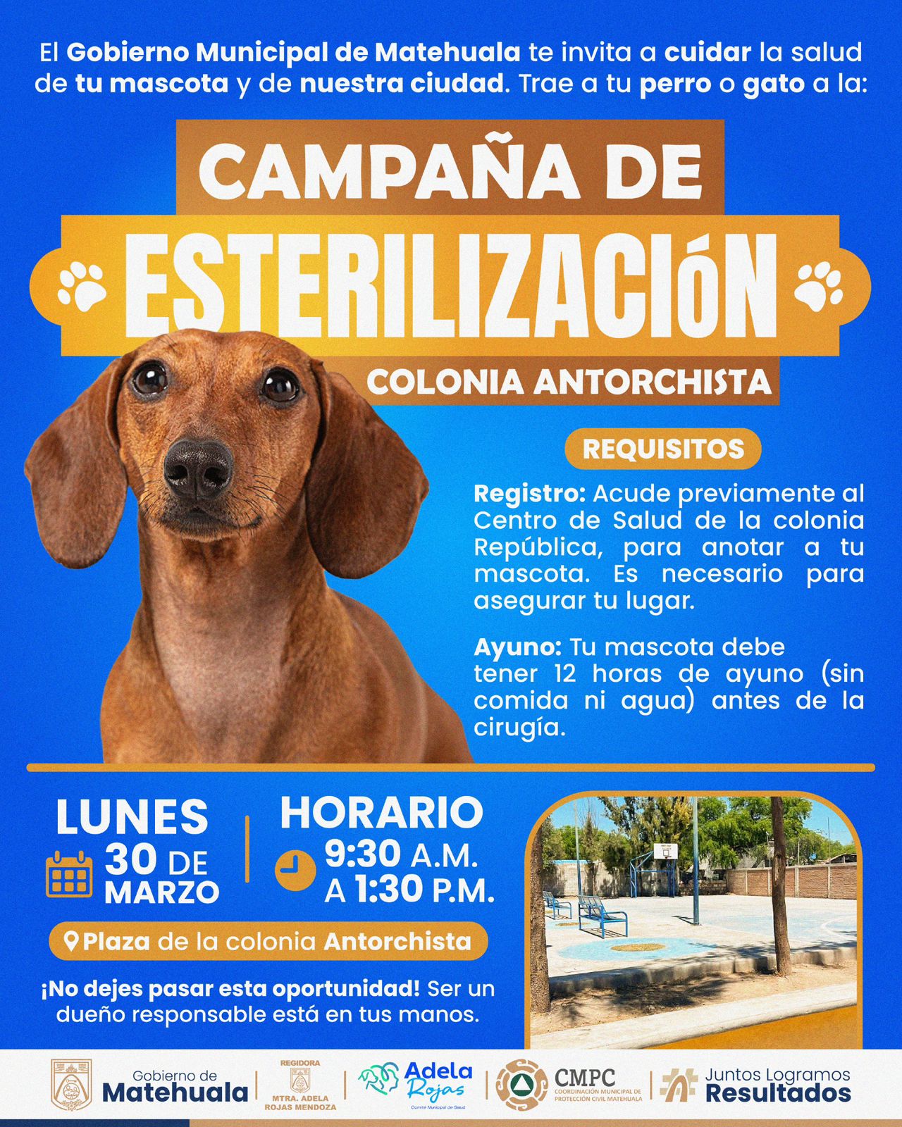 El Gobierno Municipal de Matehuala invita a la ciudadanía a participar en esta importante campaña de esterilización, con el objetivo de cuidar la salud de nuestras mascotas y contribuir al bienestar de nuestra comunidad.