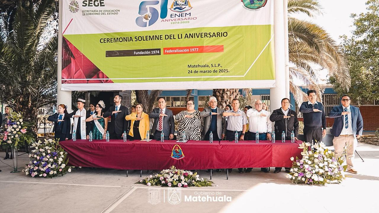 En el marco del aniversario de la Escuela Normal Mexicana, el Presidente Municipal de Matehuala, Lic. Raúl Ortega Rodríguez, asistió como invitado especial a la ceremonia conmemorativa, donde dirigió un emotivo mensaje a docentes, alumnos, autoridades educativas e invitados presentes.
