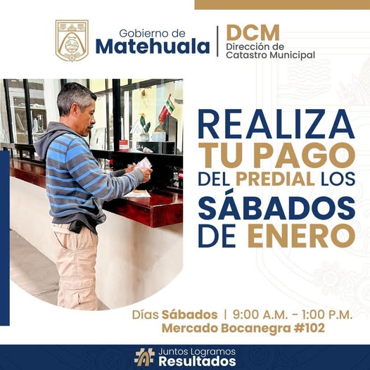 Este sábado, aprovecha y realiza tu pago del impuesto predial en las oficinas de Catastro Municipal.