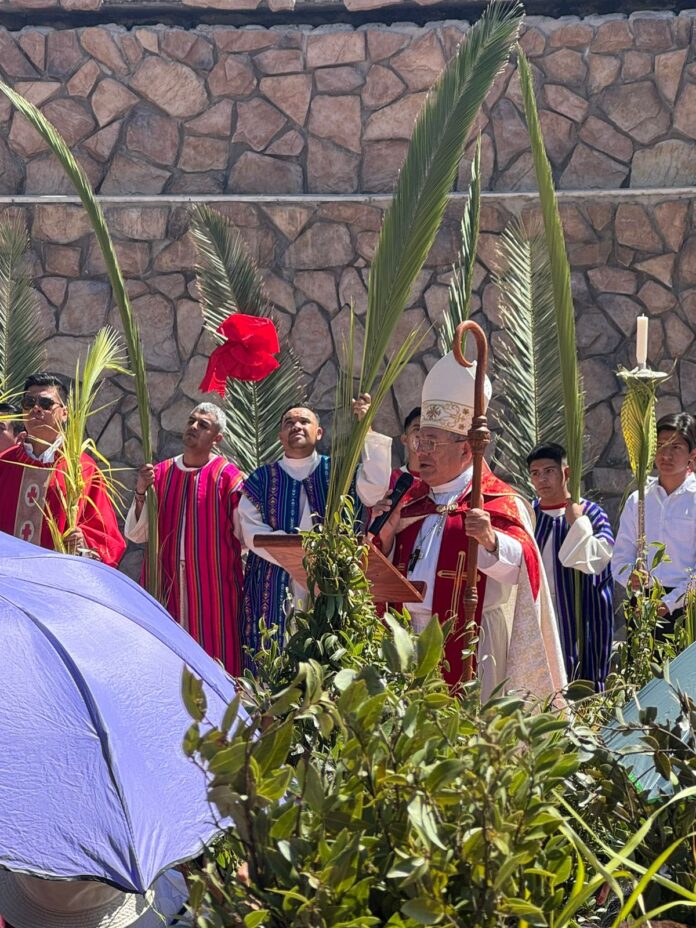 En punto de las 11:00 de la mañana partió una procesión desde el parque de Álvaro Obregón, encabezada por el obispo de la diócesis de Matehuala, Mons. Margarito Salazar Cárdenas y cientos de feligreses que con fe y jubileo recrearon la entrada triunfal de Jesús en Jerusalén, recordando el amor al prójimo y las buenas acciones como hermanos e hijos de Dios.
