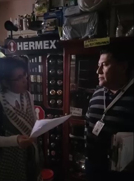 Una de las mujeres se dirige al actuario y le señala que ese no es el domicilio y también que no coinciden las medidas señaladas en el documento, pero, pese a las insistencias de que la sentencia tiene irregularidades, el presunto funcionario ordena que comiencen a sacar todo de la tienda.