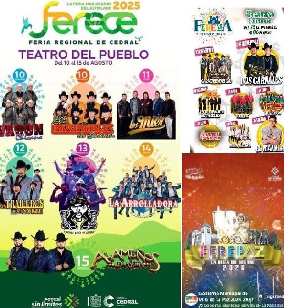 En comparación con la FEREMA de Matehuala, la pasada Feria Regional de Cedral presentó en 6 días a «Vagón Chicano», «Los Indomables», «Los Mier», «Los Traileros», «Kumbia Kings» y «La Arroyadora», cerrando la fiesta con «Los Alameños de la Sierra».