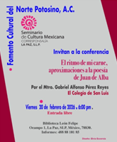 Fomento Cultural del Norte Potosino, A.C. y la Corresponsalía La Paz del Seminario de Cultura Mexicana Invitan a la conferencia “El ritmo de mi carne”: aproximaciones a la poesía de Juan de Alba.
