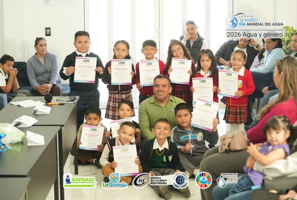 Continuando con las actividades del Día Mundial del Agua 2026 «Agua y Género», el Organismo Operador de los Servicios de Agua Potable, Alcantarillado y Saneamiento de Matehuala (SAPSAM), llevó a cabo un Conversatorio Infantil enfocado en estudiantes de nivel preescolar, actividad que tiene la finalidad de concientizar a las nuevas generaciones acerca del vital líquido y su estrecha relación con la igualdad de género. Este espacio logró crear un ambiente ameno en el cual 11 niños de diferentes jardines pudieron dialogar, expresar sus opiniones y aprender de forma clara y sencilla sobre las principales problemáticas sociales relacionadas con la escasez, además de cómo esto afecta de manera desigual a miles de personas. Durante esta jornada nos acompañaron distinguidas personalidades, entre ellas, el director general de SAPSAM, el Lic. Juan Carlos Pérez Mendoza; el gerente comercial, Lic. Rubén Proa; y la coordinadora de cultura del agua, Lic. Isabel Flores. Como agradecimiento por su participación y compromiso, se entregaron reconocimientos y kits de material didáctico, reafirmando nuestro compromiso de crear una sociedad más consciente, justa y sostenible.¡Donde fluye el agua, crece la igualdad!