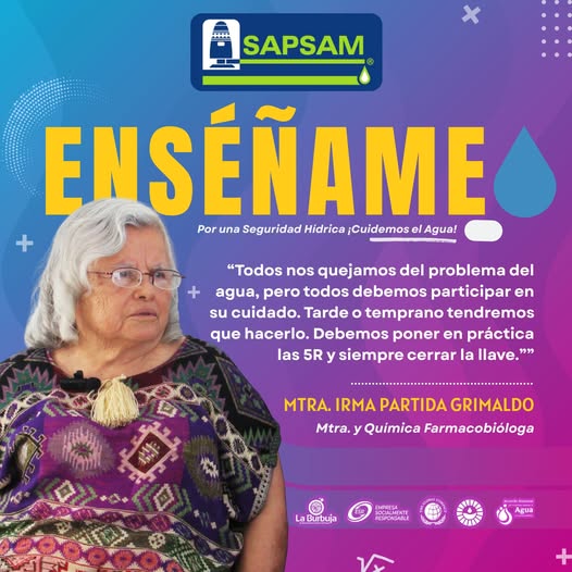 Con 37 años de trayectoria en el ámbito educativo, la QFB. Irma Partida Grimaldo ha dedicado su vida a la enseñanza y a la formación de estudiantes en el área de las ciencias . Egresada de la Universidad Autónoma de San Luis Potosí, con experiencia en laboratorio clínico y control de calidad, así como con estudios de posgrado, ha contribuido al desarrollo académico en instituciones como el Tecnológico de Matehuala y el CBTIS 151. Su labor docente ha destacado por la excelencia de sus alumnos, quienes han obtenido reconocimientos a nivel estatal en el área de química. Su mensaje es claro: el cuidado del agua es responsabilidad de todos. Señala que no basta con reconocer el problema, es necesario actuar, aplicar hábitos como las 5R y evitar el desperdicio desde acciones tan simples como cerrar la llave. Tarde o temprano, todos tendremos que comprometernos con su cuidado, por lo que el momento de actuar es ahora. ¡Donde fluye el agua, crece la igualdad!