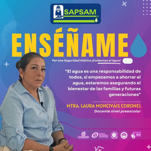 Con 38 años de servicio en el ámbito educativo, la Profa. Laura Monciváis Coronel ha dedicado su vida a la atención y formación de niñas y niños en nivel preescolar, especialmente en el área de educación especial. Tras iniciar su carrera como docente, se especializó en el acompañamiento de alumnos con dificultades de aprendizaje, labor que ha desempeñado durante más de 30 años en CAPEP, brindando apoyo en distintos jardines de niños y contribuyendo al desarrollo integral de sus estudiantes. Su mayor satisfacción ha sido el reconocimiento de las familias y el cariño de los niños, reflejo de su entrega y vocación. Su mensaje es claro: el cuidado del agua es responsabilidad de todos. Señala que adoptar hábitos de ahorro y uso consciente permite garantizar el bienestar de las familias y de las futuras generaciones. Cuidar el agua hoy es asegurar la vida mañana, por lo que hace un llamado a formar conciencia desde la infancia y trabajar unidos como sociedad para proteger este recurso vital. ¡Donde fluye el agua, crece la igualdad!