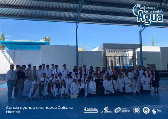 Programa “Mes de la Cultura del Agua” 2025 En el marco del Mes de la Cultura del Agua 2025, alumnas y alumnos de nivel secundaria del Instituto Matel, A.C. realizaron una serie de exposiciones y actividades creativas sobre el tema “El Derecho Humano al Agua”, mostrando gran interés y compromiso por el cuidado de este recurso vital. Participaron los tres niveles de secundaria —primer, segundo y tercer grado—, quienes presentaron carteles, trípticos, maquetas y dinámicas didácticas dirigidas también a niños de cuarto grado de primaria, fomentando el aprendizaje y la conciencia hídrica de forma divertida y participativa. Durante la jornada nos acompañaron: