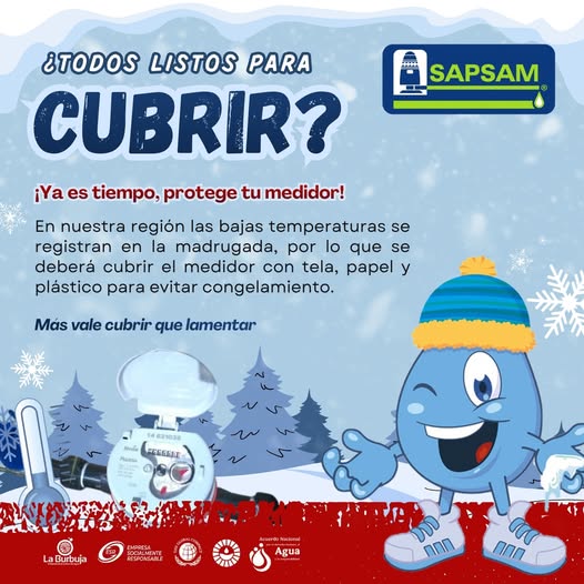 Las bajas temperaturas llegan con fuerza durante la madrugada en nuestra región, y esto puede provocar el congelamiento del medidor de agua. Para evitar daños y asegurar un buen funcionamiento, cúbrelo a tiempo utilizando tela, papel o plástico. Un simple cuidado preventivo puede ahorrarte reparaciones y molestias más adelante.