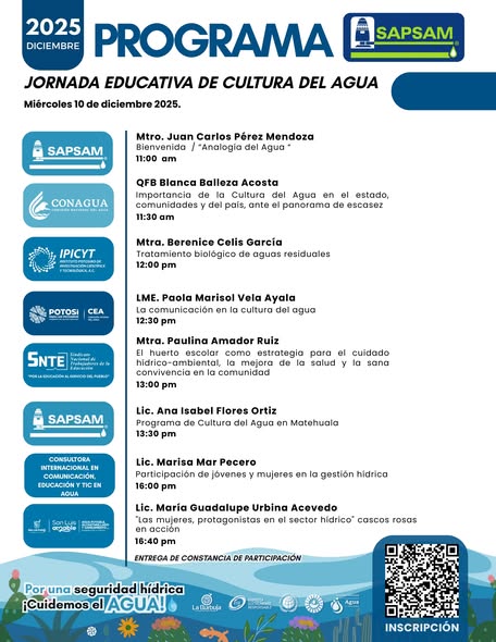 Estas conferencias forman parte del Programa Educativo de Cultura del Agua, cuyo propósito es seguir construyendo, paso a paso, una comunidad informada, preparada y comprometida con el futuro.