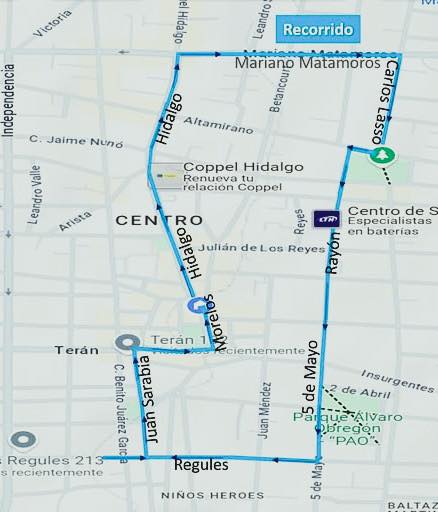 El despeje de calles dará inicio el viernes 03 de abril a partir de las 14:00 horas, el recorrido es el siguiente; parte de la calle Regules hacia el oriente hasta llegar a Juan Sarabia, continúa por Celso N Ramos, pasa a un costado de la Plaza de Armas, avanza sobre Morelos, Hidalgo hacia el norte, Matamoros, Carlos Lasso, para llegar al parque Vicente Guerrero (Parque del Pueblo).